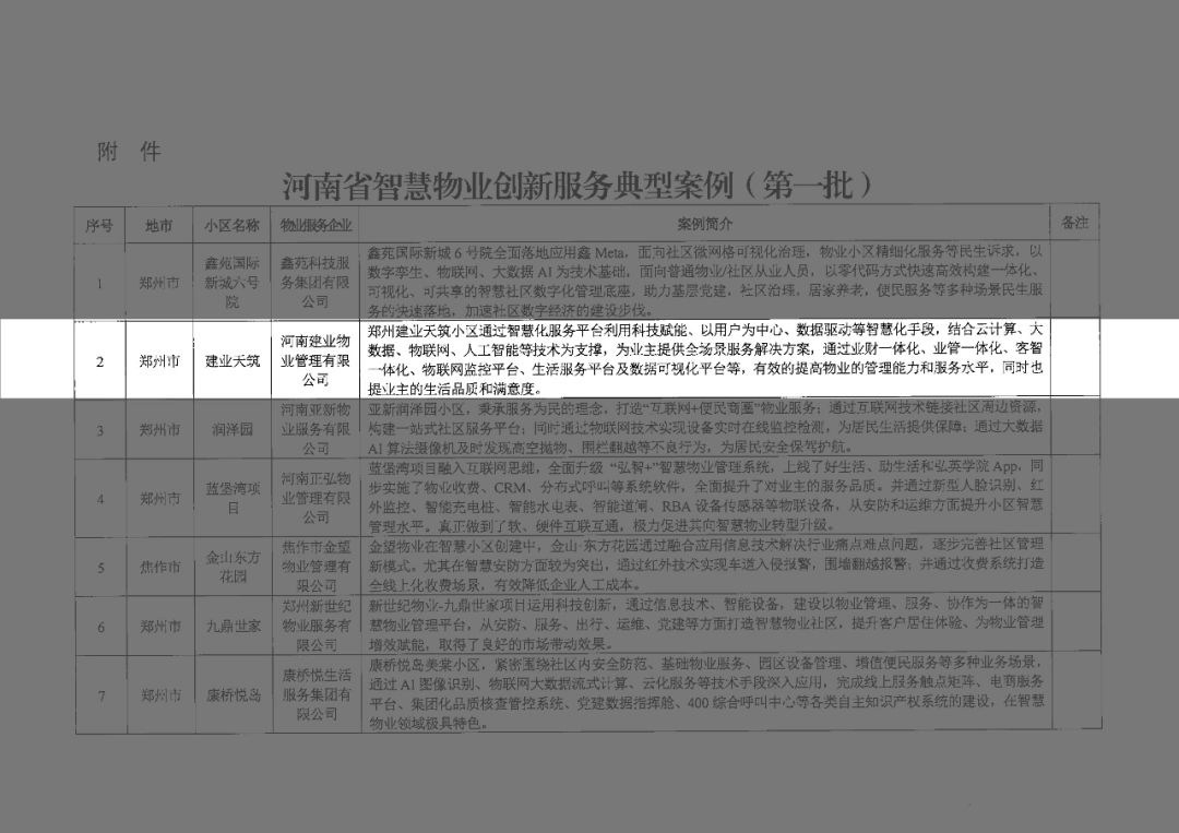 建業(yè)物業(yè)入選河南省首批智慧物業(yè)創(chuàng)新服務典型案例名單