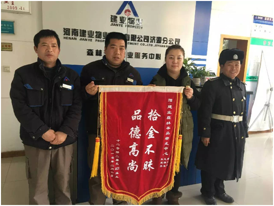 濟(jì)源·建業(yè)森林半島某業(yè)主家親戚來訪,歡聚一堂,下午在親戚準(zhǔn)備離去時(shí)發(fā)現(xiàn)自己的隨身紅包(內(nèi)有約2000元現(xiàn)金)不見了,著急的樓上樓下來回跑,此情此景恰好被綠化工朱建齊看見,他主動(dòng)上前詢問又現(xiàn)場幫忙尋找,且致電辦公室救援,值班人員王擁軍、陳文忠收到信息后,立即開始查找監(jiān)控,連續(xù)翻閱視頻13個(gè)小時(shí)終于找到了,此時(shí)已是深夜11時(shí)。次日急忙撥通了失主的電話通知其前來領(lǐng)取,業(yè)主親戚對建業(yè)物業(yè)認(rèn)真負(fù)責(zé)的態(tài)度連聲夸贊,并送錦旗一面。