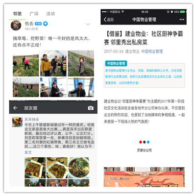 濟(jì)源、三門(mén)峽等分公司與當(dāng)?shù)胤抗芫?、電臺(tái)、晨報(bào)、項(xiàng)目公司緊密配合,舉辦大型廚神爭(zhēng)霸賽、元旦喜樂(lè)會(huì)等活動(dòng),吸引了中國(guó)物協(xié)等社會(huì)媒體的廣泛關(guān)注,并取得了良好效果。漯河、平頂山、洛陽(yáng)等分公司充分利用建業(yè)一家APP、微信、直播平臺(tái)等載體,實(shí)現(xiàn)線上線下的充分互動(dòng),更是贏得了業(yè)主的一致好評(píng)。插花、葫蘆絲、樂(lè)器、乒乓球、書(shū)法協(xié)會(huì)等社群組織的持續(xù)運(yùn)營(yíng)和活躍,倡導(dǎo)并引領(lǐng)了業(yè)主的新型生活理念。