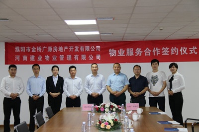 5月24日,河南建業(yè)物業(yè)管理有限公司與濮陽(yáng)金橋廣源房地產(chǎn)開(kāi)發(fā)有限公司物業(yè)顧問(wèn)戰(zhàn)略合作簽約儀式在建業(yè)總部港成功舉行,金橋廣源地產(chǎn)總經(jīng)理史乾亨、副總經(jīng)理張志現(xiàn)、營(yíng)銷總監(jiān)王俊超、行政總監(jiān)馬顏、河南建業(yè)物業(yè)管理有限公司助理總經(jīng)理杜鵬濤出席了本次活動(dòng)。在此之前,4月15日建業(yè)物業(yè)也成功與開(kāi)封家盟置業(yè)有限公司簽署了物業(yè)顧問(wèn)及案場(chǎng)代管合同。