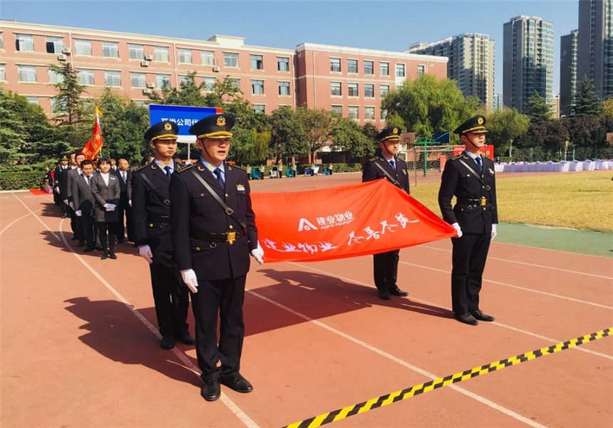 來(lái)自建業(yè)物業(yè)全省各地、經(jīng)過層層比賽選拔出來(lái)的禮兵、維修和保潔崗位共計(jì)500余名優(yōu)秀員工參加了此次比賽。首先,由許靜總宣布本次大比武活動(dòng)正式開始。入場(chǎng)儀式環(huán)節(jié),鄭州區(qū)域、豫東區(qū)域、豫南區(qū)域、豫西區(qū)域、豫北區(qū)域、至尚物業(yè)及案場(chǎng)服務(wù)部組成代表隊(duì)方陣逐一入場(chǎng),他們口號(hào)嘹亮、目光堅(jiān)定、英姿颯爽,展現(xiàn)出物業(yè)團(tuán)隊(duì)蓬勃向上、拼搏進(jìn)取的良好精神面貌。