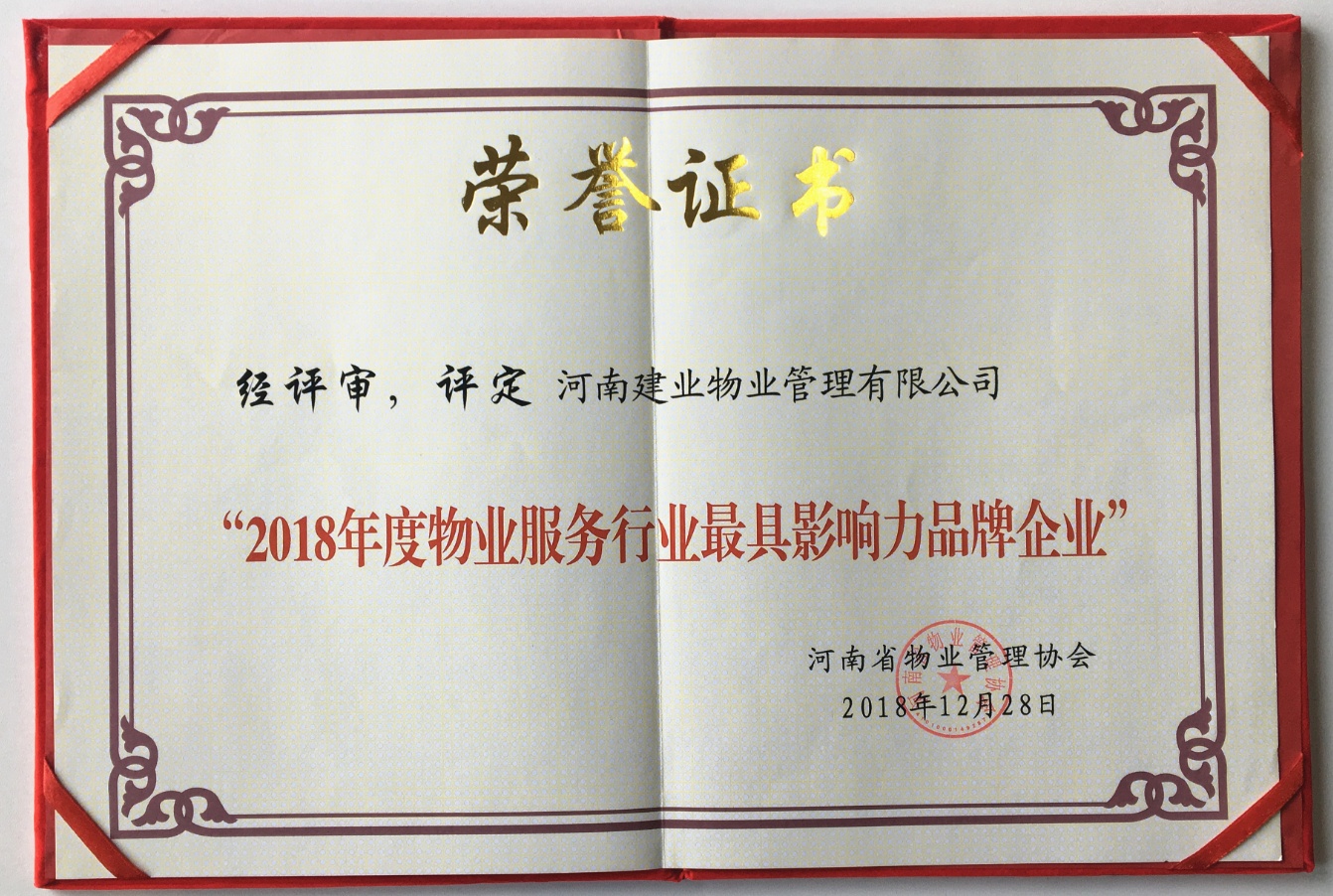 為弘揚(yáng)河南省物業(yè)服務(wù)行業(yè)發(fā)展中的正能量和新風(fēng)尚,樹立行業(yè)典型和標(biāo)桿,本次會議現(xiàn)場宣讀并頒發(fā)了河南省物業(yè)服務(wù)行業(yè)先進(jìn)獎項(xiàng)。建業(yè)物業(yè)喜獲“河南省物業(yè)服務(wù)行業(yè)2018年度先進(jìn)企業(yè)”和“2018年度最具影響力品牌宣傳企業(yè)”稱號;建業(yè)物業(yè)運(yùn)營管理部吳陽榮獲“2018年度河南省物業(yè)服務(wù)行業(yè)優(yōu)秀通訊員”稱號。作為中原人居品質(zhì)服務(wù)引領(lǐng)者,建業(yè)物業(yè)的行業(yè)地位備受認(rèn)可,業(yè)界口碑持續(xù)攀升,品牌價值不斷凸顯。