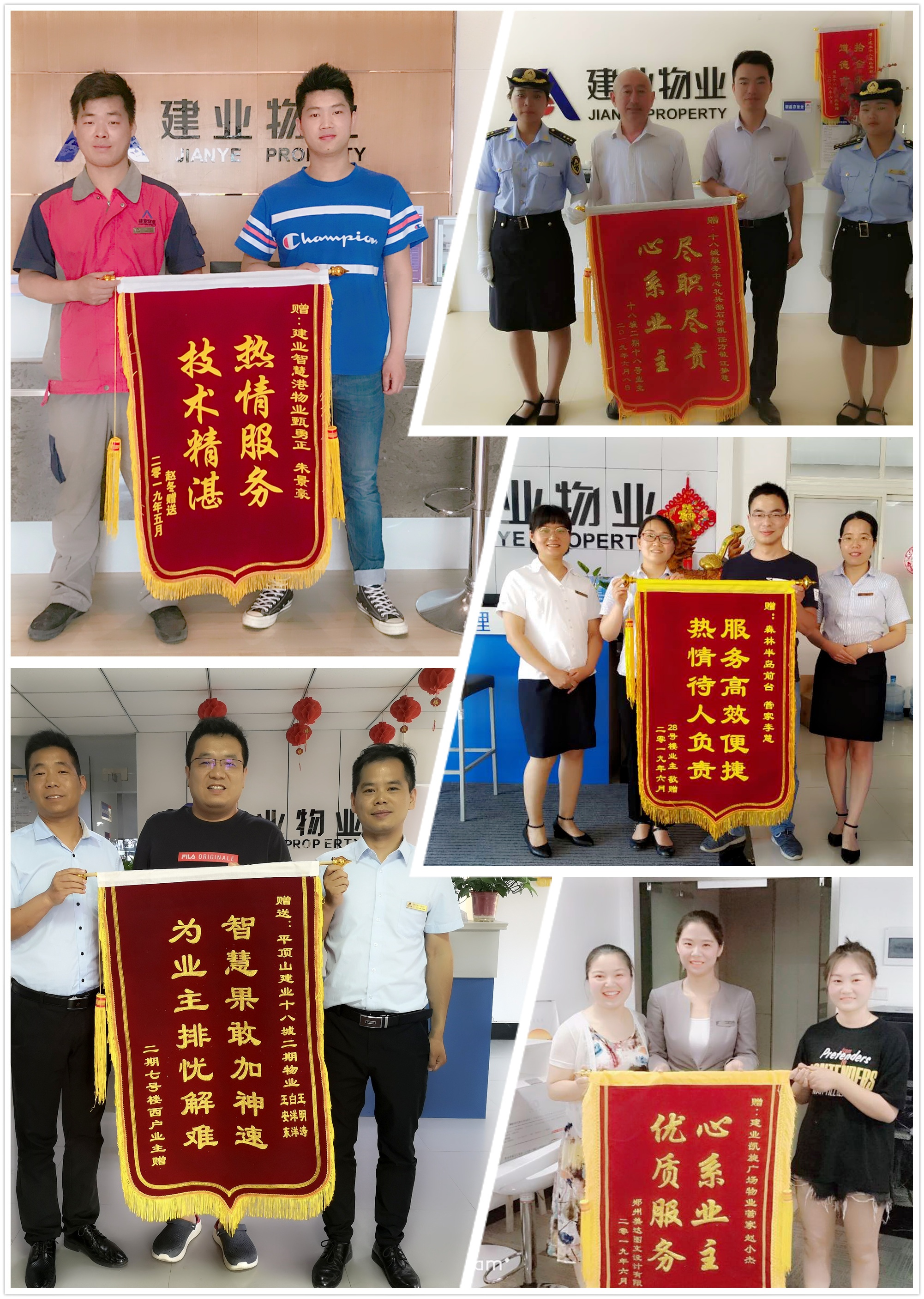 六月,艷陽如火,蟬鳴如潮。建業(yè)物業(yè)人滿懷如火的熱情,用服務(wù)為業(yè)主送來絲絲舒暢。六月份全省在管小區(qū)涌現(xiàn)出好人好事共計284例,其中收到錦旗65面,表揚信127封,來電感謝及其他92例。