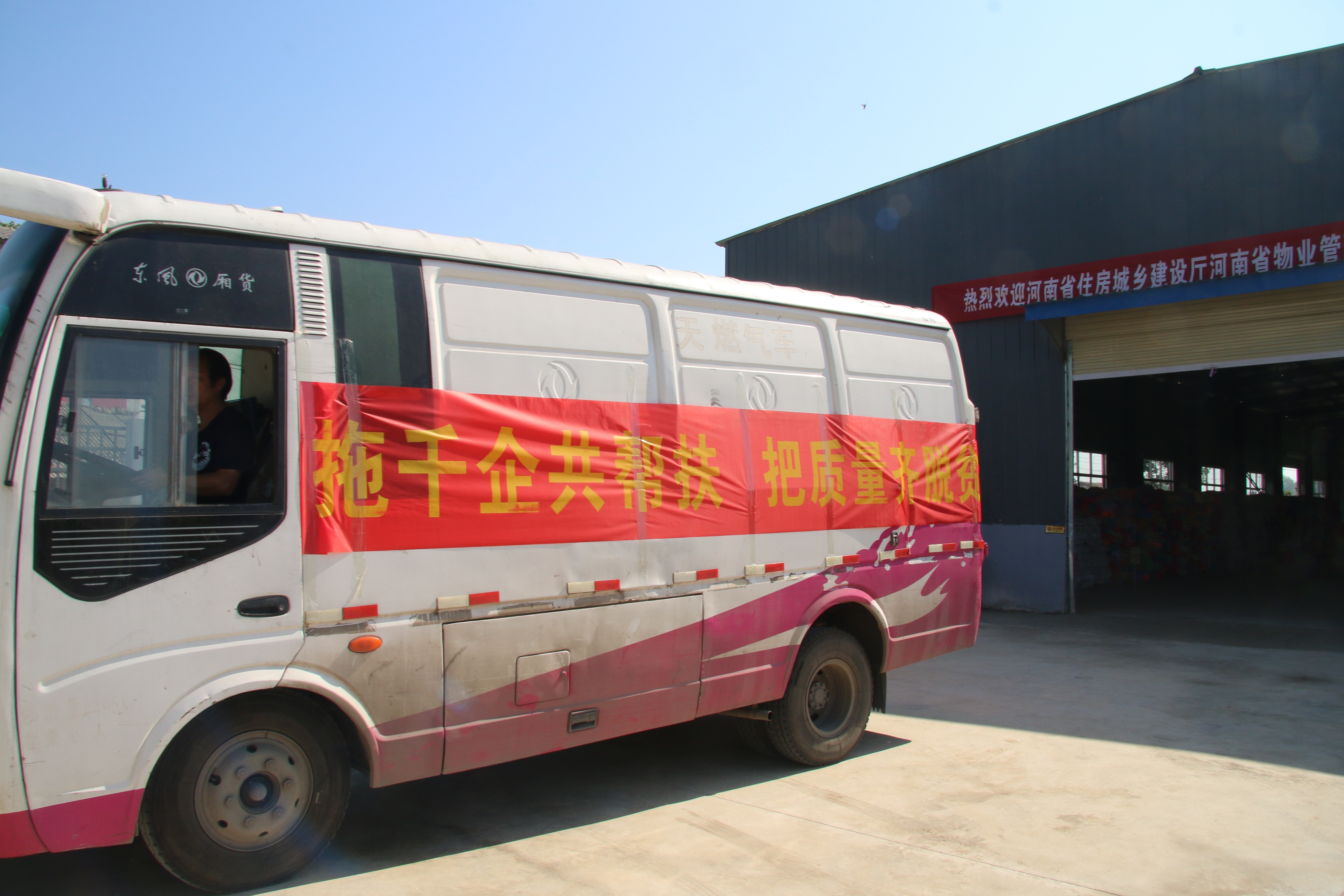 啟動會議結(jié)束后,一輛懸掛“拖千企,共幫扶;把質(zhì)量,齊脫貧”條幅、載有1萬把愛心拖把的車輛緩緩駛?cè)虢I(yè)金水花園,標(biāo)志著河南省物業(yè)服務(wù)行業(yè)共同參與的產(chǎn)業(yè)扶貧正式打響第一炮。
