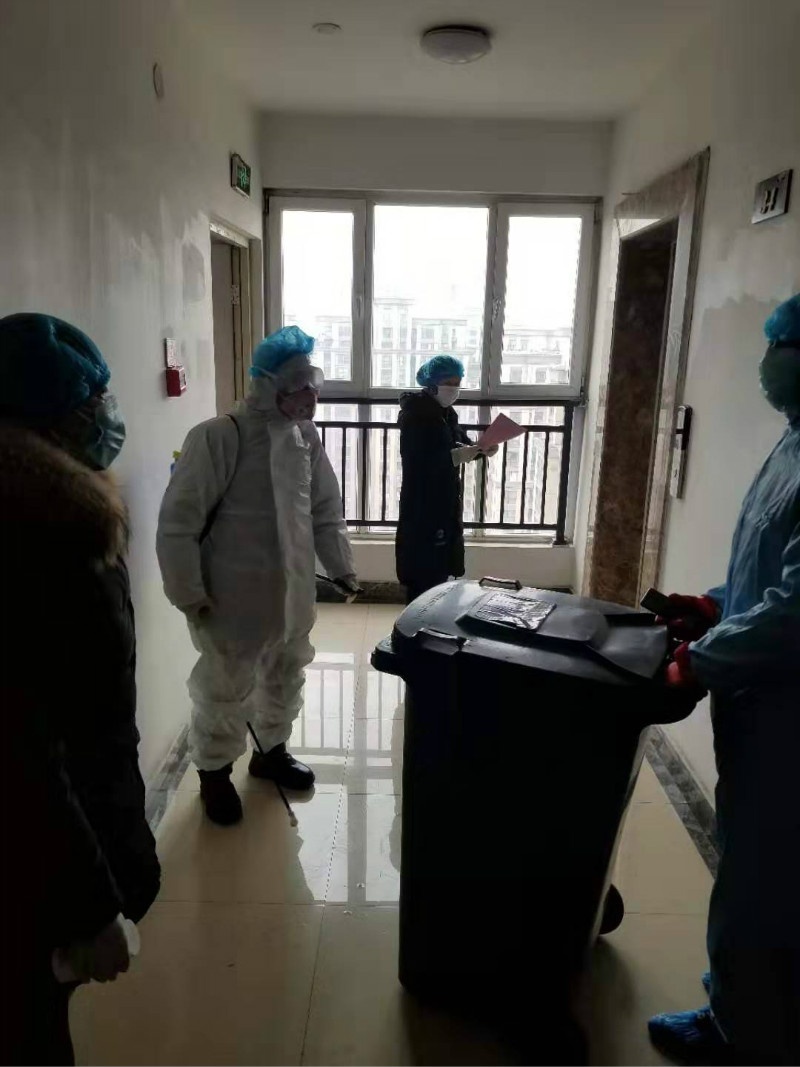 盡管新鄉(xiāng)市防控中心第一時間將整棟樓封鎖了,但仍需要物業(yè)人員進(jìn)樓進(jìn)行全面消殺并挨家挨戶統(tǒng)計隔離區(qū)業(yè)主信息。王瑛經(jīng)理將此項工作的重要性和危險性告知團(tuán)隊后,出乎意料的是大家沒有一人退縮,一聲聲“我去”“還有我”......讓所有人既難受又動容。都是過命的事,都有各自的家庭要守護(hù),大家不是不怕,但這一刻大家想的是責(zé)任和擔(dān)當(dāng)。