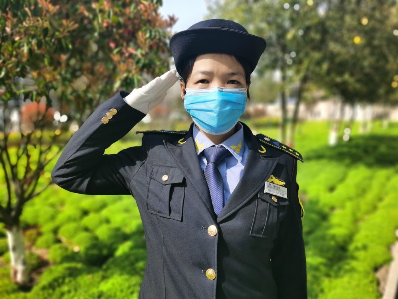 張海銳是建業(yè)物業(yè)魏崗片區(qū)的一名禮兵,疫情發(fā)生后,她立即奔赴崗位,體溫測量、夜間值守、車輛登記消毒、疫情防控知識(shí)宣傳……她和她的隊(duì)員們連續(xù)一個(gè)多月奮戰(zhàn)在防疫一線,盡管很累,但她從未想過退縮。