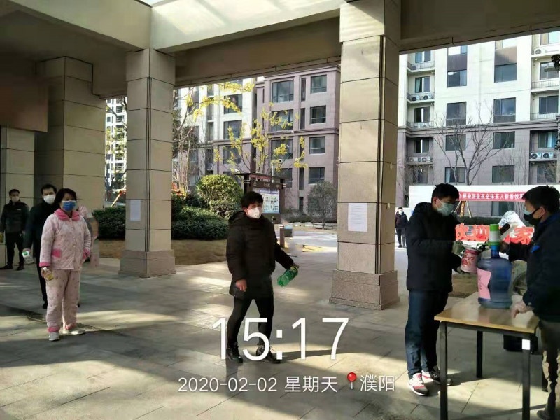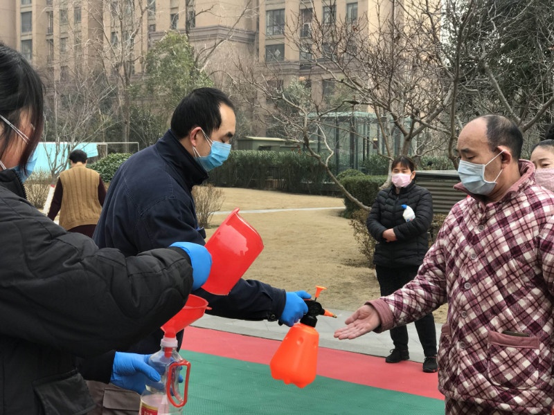 在建業(yè)物業(yè)社區(qū)免費(fèi)發(fā)放消毒液