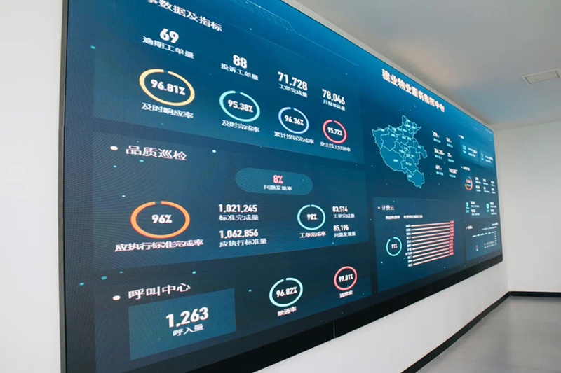 建業(yè)智慧物業(yè)借助互聯(lián)網(wǎng)和大數(shù)據(jù)技術(shù),線上、線下融合,完成物業(yè)基礎(chǔ)服務(wù)客服、報事、品質(zhì)、消防、電梯、遠(yuǎn)程樓宇自控(RBA)、計(jì)費(fèi)等模塊,多個系統(tǒng)的搭建實(shí)時監(jiān)控,關(guān)鍵運(yùn)營指標(biāo)實(shí)時抓取,并將智慧物業(yè)信息全部整合、共享在大屏上,建立一個集中展現(xiàn)、運(yùn)維、管理、協(xié)調(diào)、指揮、調(diào)度的綜合環(huán)境,實(shí)現(xiàn)物業(yè)管理與服務(wù)過程中的大數(shù)據(jù)支撐與科學(xué)決策,最終達(dá)成數(shù)字化轉(zhuǎn)型與科技賦能。