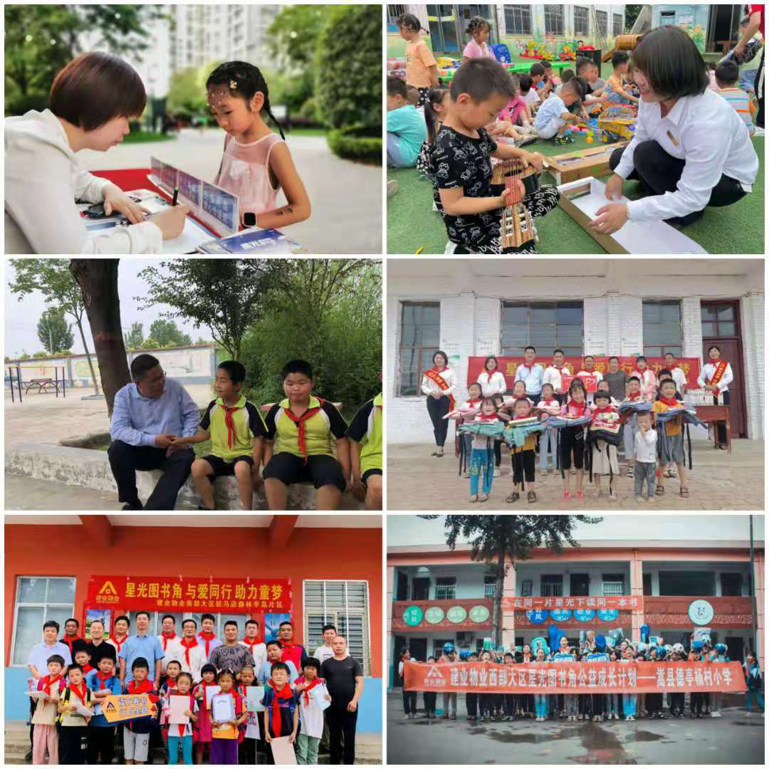 5月起,建業(yè)物業(yè)與百萬業(yè)主一起啟動“星光圖書角——建業(yè)物業(yè)公益成長計劃”,為偏遠地區(qū)學(xué)校送去書籍,愿那里的孩子能在書籍中找尋到實現(xiàn)夢想的力量。截至6月底,星光圖書角活動累計扶持21個貧困小學(xué),覆蓋學(xué)生3135名,共捐贈12975本書籍及價值5萬元的學(xué)習(xí)用品,收獲良好的社會反響。