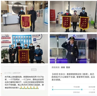 1月份,建業(yè)物業(yè)在管園區(qū)涌現(xiàn)出好人好事1094件,其中收到錦旗221面、感謝信159封、其他致電表?yè)P(yáng)等714次。