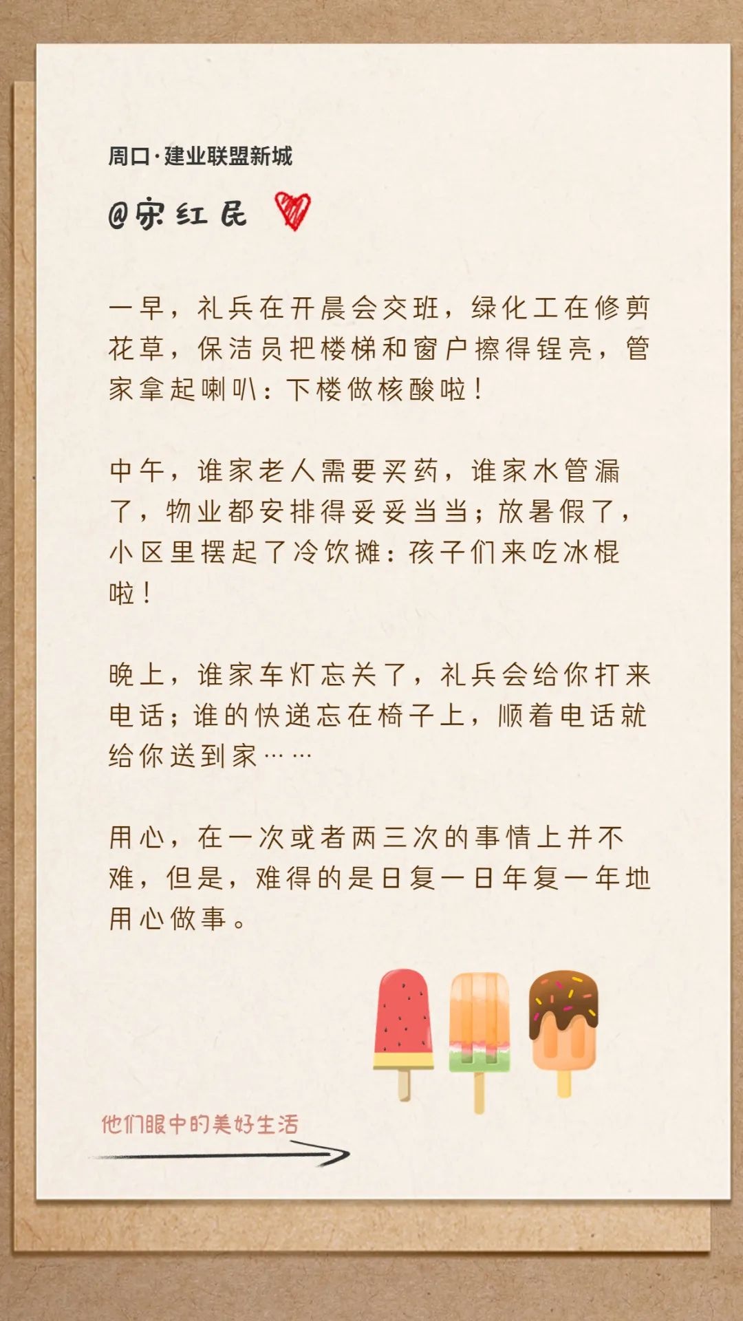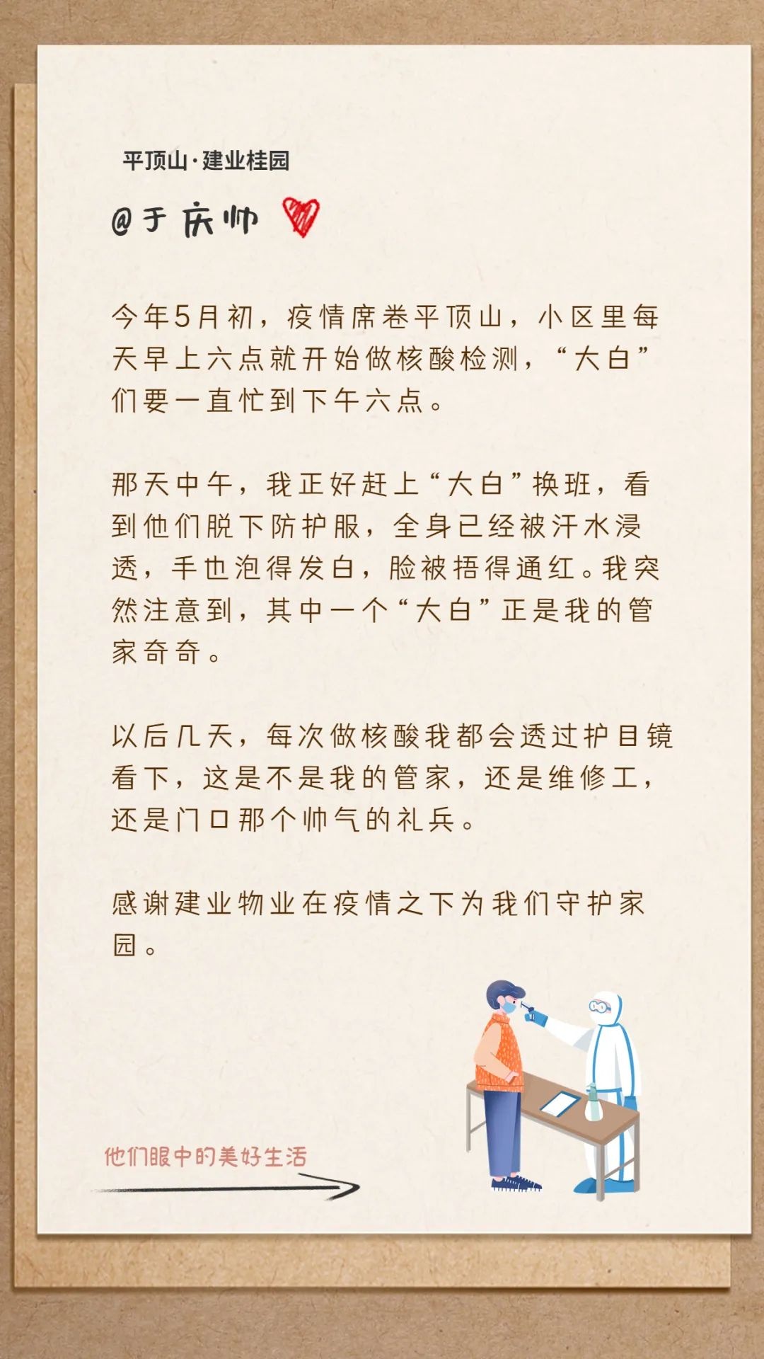 在通往美好生活的道路上,每個人都在用自己的方式努力著,奮斗著,建業(yè)物業(yè)人也將不斷以守護(hù)者、創(chuàng)造者、陪同者的身份,為業(yè)主的美好生活添磚加瓦、保駕護(hù)航。