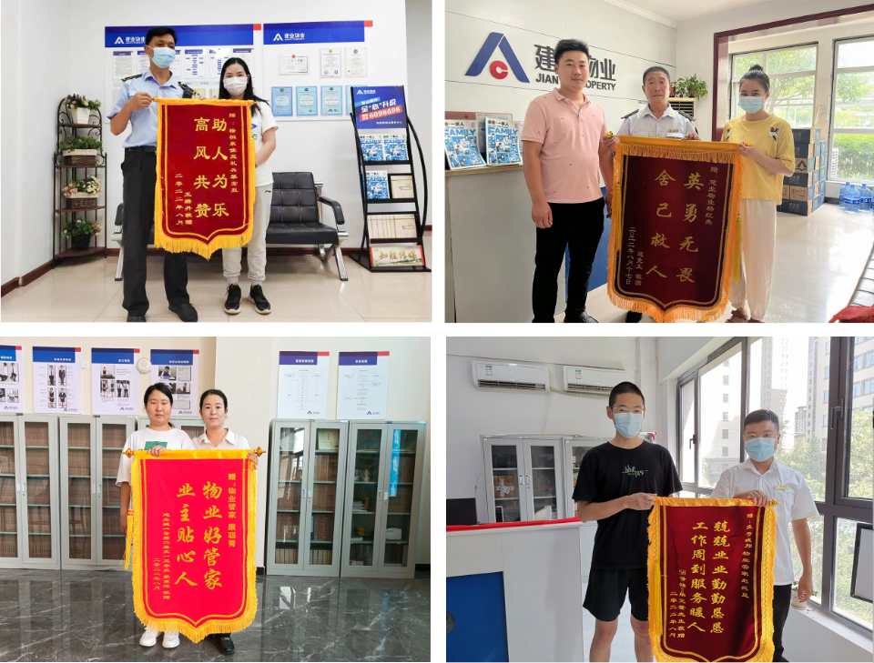 8月份,建業(yè)物業(yè)在管項(xiàng)目共涌現(xiàn)出好人好事1414件,其中收到錦旗264面,感謝信155封,其他致電表揚(yáng)等984次。