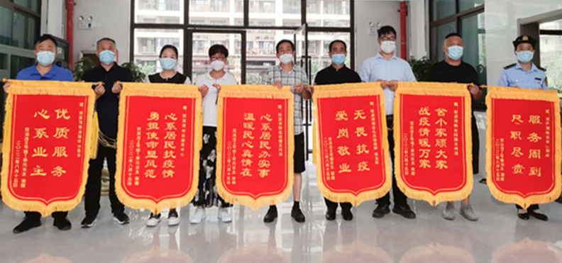 在小區(qū)物業(yè)和業(yè)主的共同努力下,民權(quán)·雙溪灣做到了“零感染、零密接”,迎來了解封時(shí)刻。兩天后,民權(quán)·雙溪灣物業(yè)服務(wù)中心收到了業(yè)主自發(fā)送來的六面錦旗,他們以此表達(dá)對(duì)所有物業(yè)工作人員的認(rèn)可和感謝。