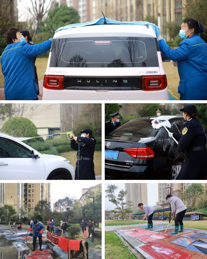 在高壓水槍的沖刷下,一塊塊地墊地毯,一輛輛汽車煥然一新。解壓的場景也讓人的心情變得好了起來,去污除垢,擺脫晦氣,迎接一個嶄新的新年。