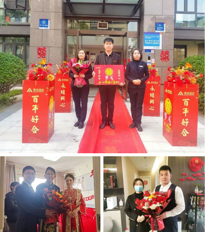 中國人結(jié)婚講究挑個好日子,每到年底,婚禮就多了起來。鋪紅毯、送鮮花、貼喜字……在業(yè)主的大喜日子里,建業(yè)物業(yè)人的祝福和服務(wù)從不缺席。