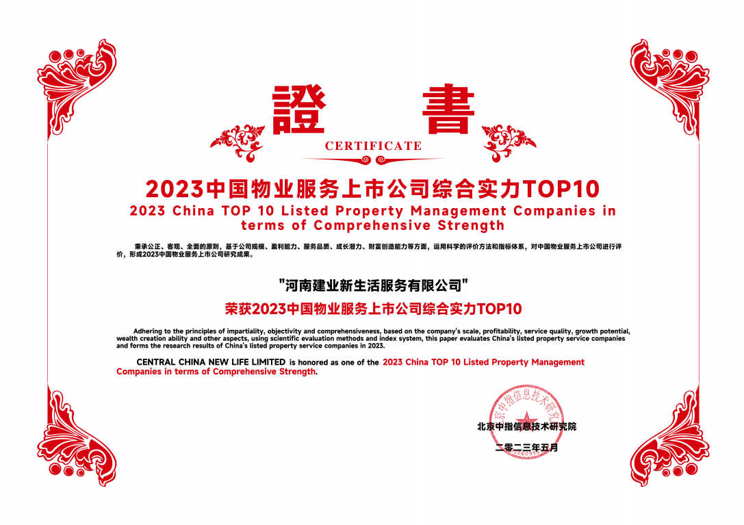 建業(yè)新生活榮膺“2023中國物業(yè)服務(wù)上市公司綜合實力TOP10”!