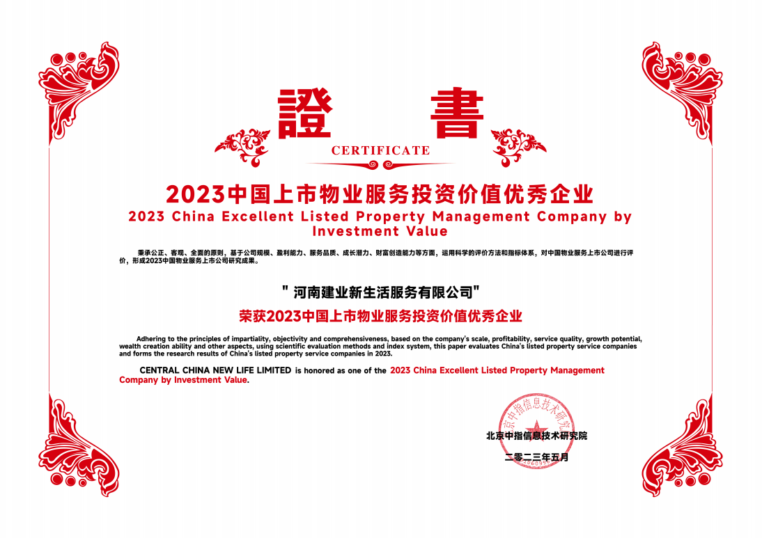 自2020年上市以來,建業(yè)新生活不斷拓展服務(wù)邊界,憑借持續(xù)穩(wěn)健的發(fā)展和卓越優(yōu)異的成績,成為資本市場物企領(lǐng)域的佼佼者。本次獲得的榮譽也展現(xiàn)了行業(yè)和資本市場對建業(yè)新生活的肯定和支持。