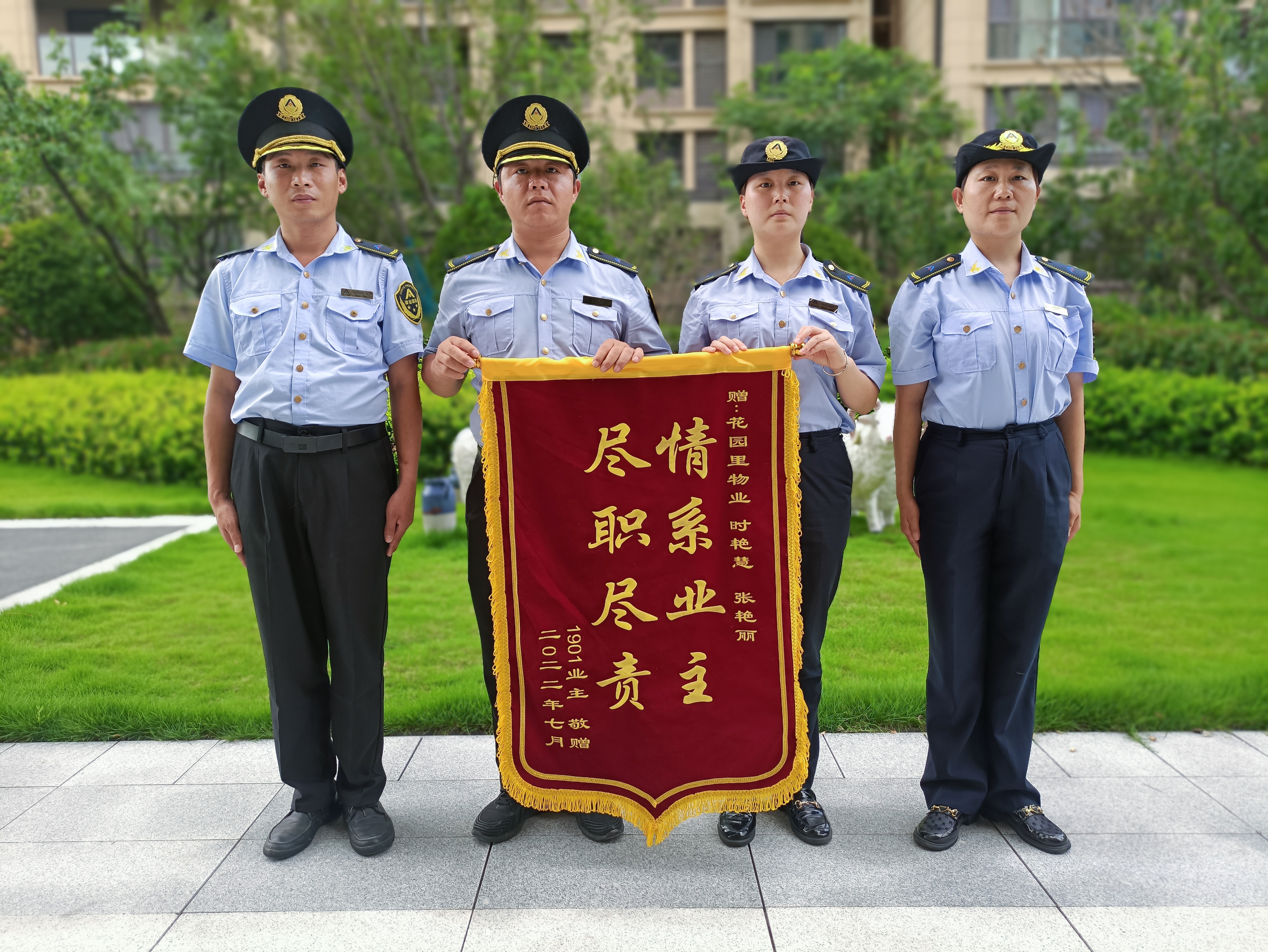 深夜還在回復(fù)業(yè)主信息的貼心管家、24小時值崗巡查的禮兵、緊急情況隨叫隨到的維修工。每一天,建業(yè)物業(yè)人都在一遍遍巡查園區(qū)、快速響應(yīng)業(yè)主需求、解決業(yè)主難題,全面守護著業(yè)主的生活。 7月份,建業(yè)物業(yè)在管園區(qū)內(nèi)涌現(xiàn)出1235件好人好事,其中錦旗211面,感謝信156封,其他致電表揚868次。 緊急滅火 保護西瓜 7月25日深夜11點30分左右,南樂·建業(yè)春天里夜班巡邏禮兵李戰(zhàn)啟正在商鋪區(qū)域巡邏,突然發(fā)現(xiàn)商鋪南側(cè)似乎有火光和濃煙,便立刻跑步前去查看情況,原來是商鋪旁邊的馬路上一輛賣西瓜的小貨車著火了,而車主此時并不在車旁。眼看火勢越來越大,李戰(zhàn)啟立刻用對講機向禮兵隊長郭國領(lǐng)匯報,說明情況和位置,請求支援。 郭國領(lǐng)攜帶滅火器材迅速趕到現(xiàn)場,熟練地打開滅火器,全力進行撲